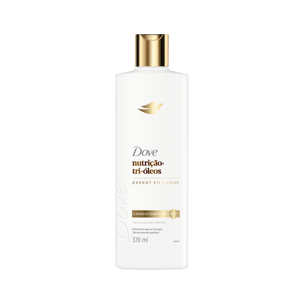 O Condicionador Dove Nutrição + Tri-Óleos 370ml foi desenvolvido para cabelos que sofrem com ressecamento, aspereza e frizz. Sua fórmula avançada combina três óleos poderosos que penetram na fibra capilar, nutrindo profundamente e devolvendo a maciez, o brilho e a maleabilidade dos fios desde a primeira aplicação. A tecnologia exclusiva Bio-Protein atua preenchendo e selando as cutículas, garantindo até 72 horas de nutrição antifrizz. O resultado são cabelos visivelmente mais saudáveis, controlados e com toque sedoso, sem pesar.