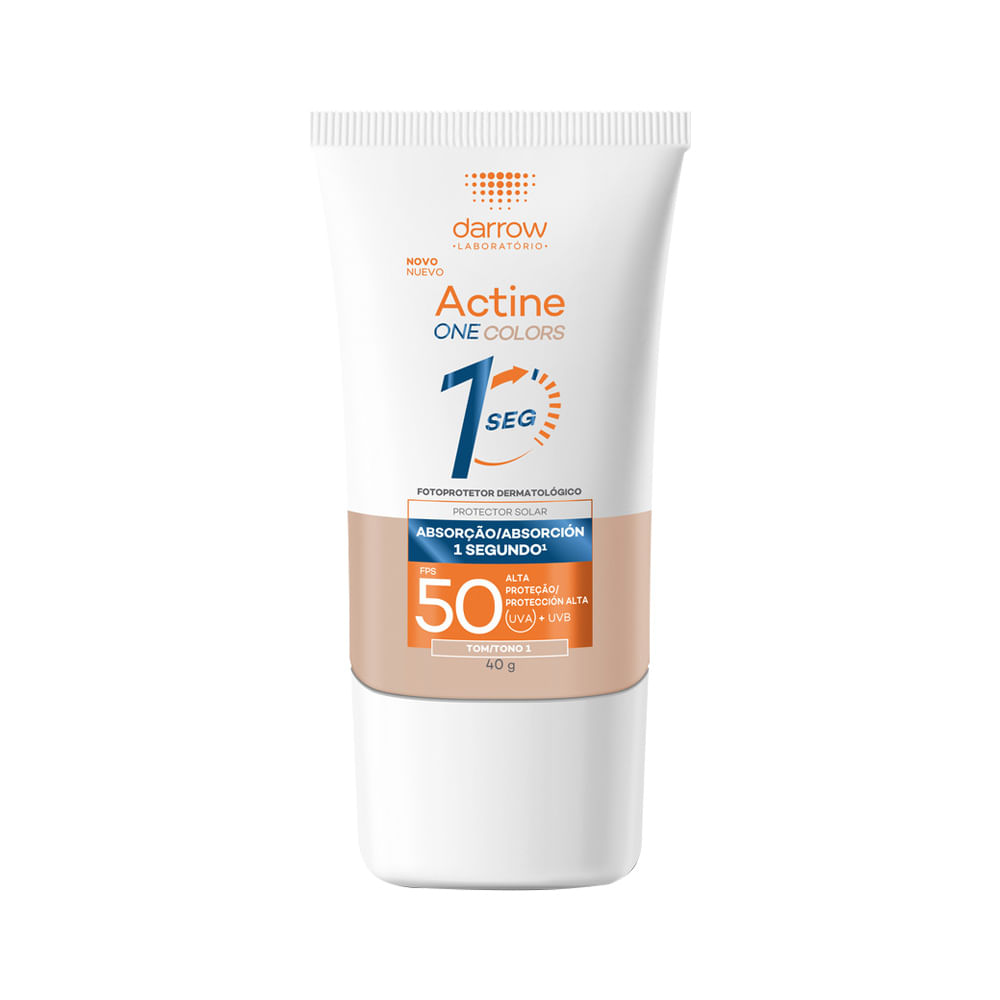 O Actine One Colors FPS 50 é um protetor solar facial da Darrow, com textura gel creme leve, absorção em 1 segundo e comcor, uniformizando o tom de pele e proporcionando um acabamento ultra-natural (disponível em 3 tons). Desenvolvido para o uso diário, oferece altaproteção UVA e UVB (FPS 50) e é indicado para todos os tipos de pele, inclusive as mais oleosas. A fórmula possui uma combinação única de ativos: Ácido Hialurônico Biomimético: contribui para a hidratação e traz leveza à textura; Pigmentos minerais: ajudam a uniformizar o tom da pele de formanatural; Polímeros gelificantes: garantem um toque seco e confortável durante o dia; Sistema filtrante exclusivo: composto por 3 filtros de amploespectro, oferece proteção UVB/UVA altamente eficaz e segura, com FPS 50 e FPUVA 31. Além disso é vegano, biodegradável e não testado em animais